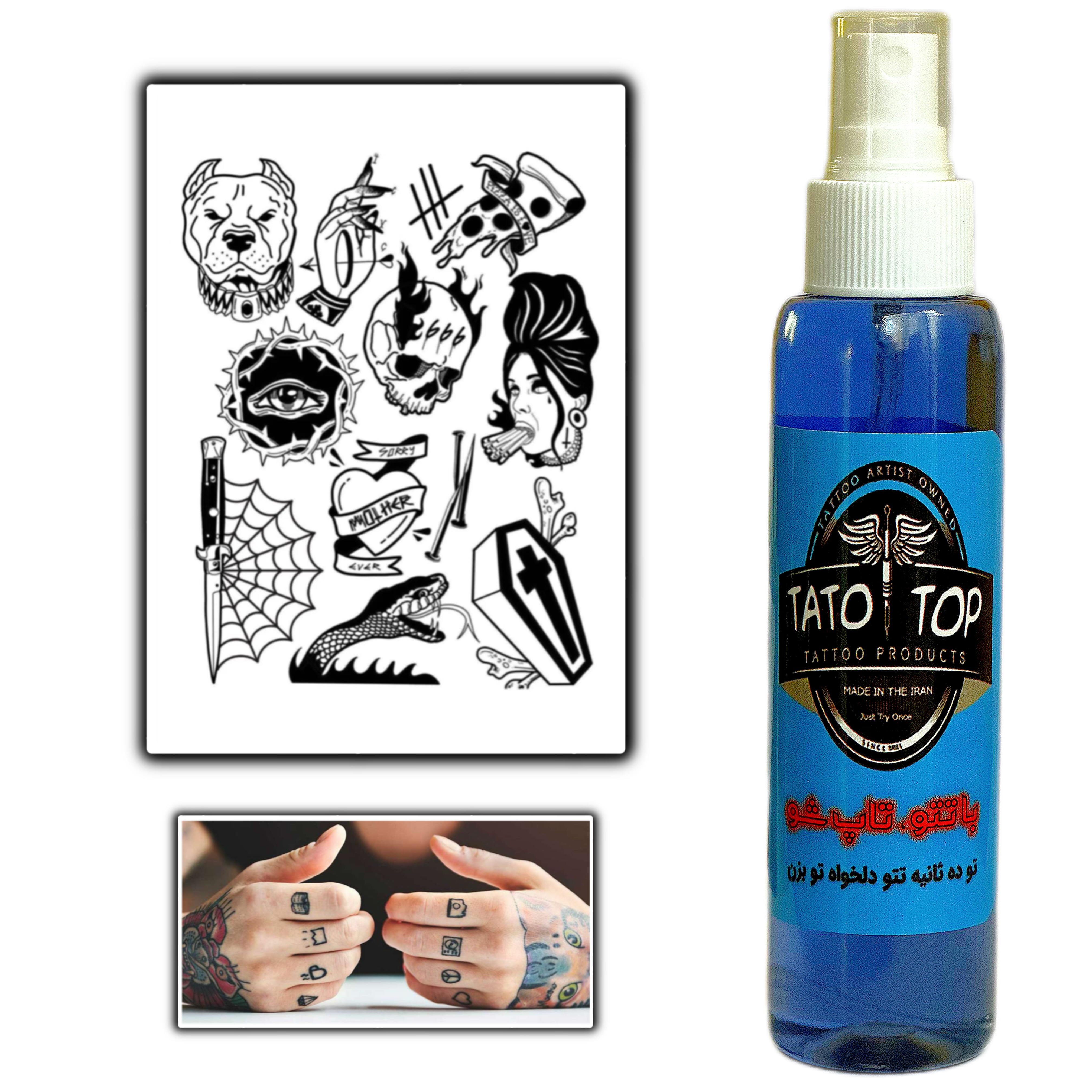 اسپری تتوموقت ۱۲۰ml و ۴۰۰طرح جذاب | پک نایس تـتوتـاپــــ